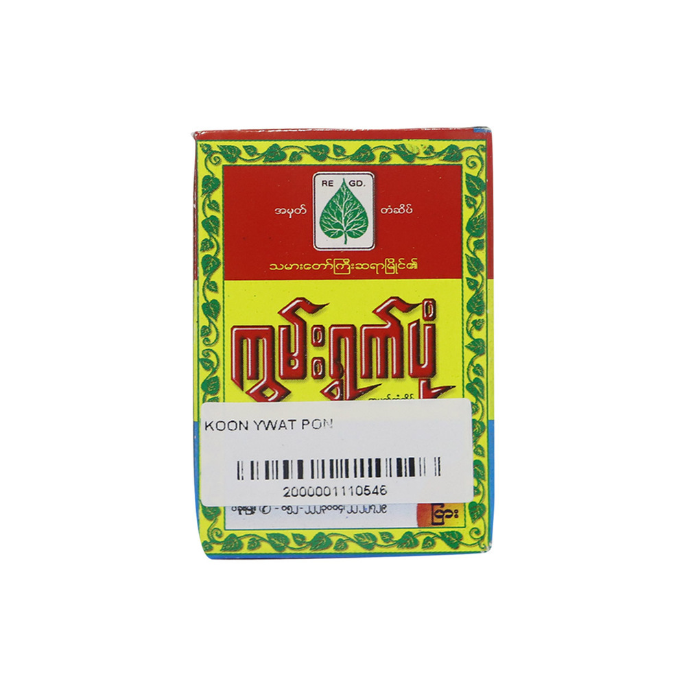 - ပါဝင်သောဆေးပစ္စည်းများ - နွယ်ချို၊ ကျောက်ဆား၊ အမိုးနီယမ် ကလိုရိုက်၊ ကွမ်း၊ လေးညှင်းပွင့်၊ ပရုတ်၊ ကွမ်းစားဂမုန်း၊ ဆရာတော်၏ပေါင်းပင်၊ စမုန်နက်၊ ခရက်စ၊ ဂျင်း၊ နာနတ်ပွင့်၊ မွှေးကြိုင်သော အလံ Borax သစ်ကြံပိုးခေါက်၊ ကုလားအုတ်ဆူး၊ ဇာဒိပ္ပိုလ်သီး။