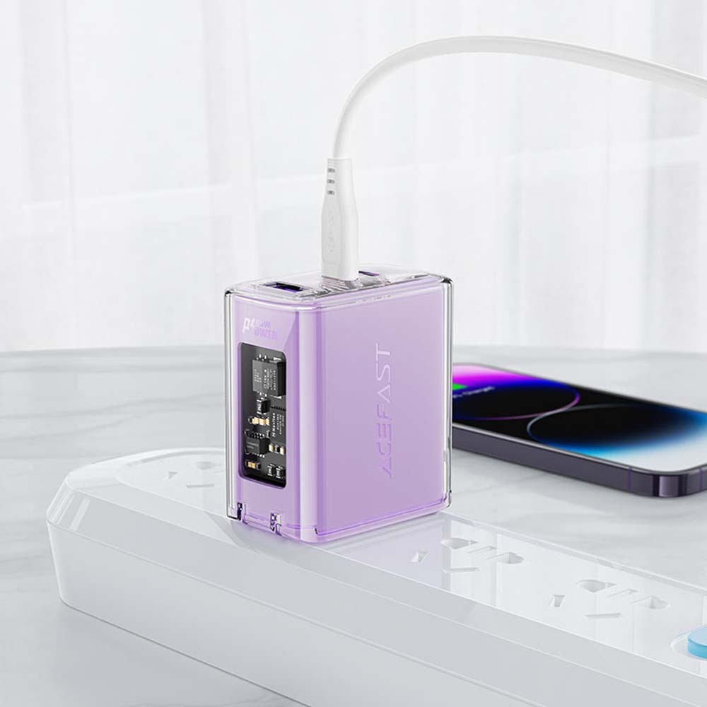 Acefast A47 Pd65W Gan Sparkling Series (2*USB-C+USB-A) Charger 27050010 Purple Alfalfa