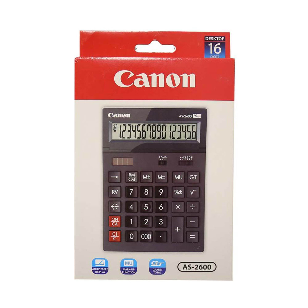 - Specifications & Functions - Eco-concious and stylish arc design calculator. A 16-digit desktop calculator with practical Grand Total, Decimal selection and Rounding functions. It features a dual power source and a smart black finish. Unique arc shape design. Large adjustable LCD display. Key rollover, mark up and reverse function.
