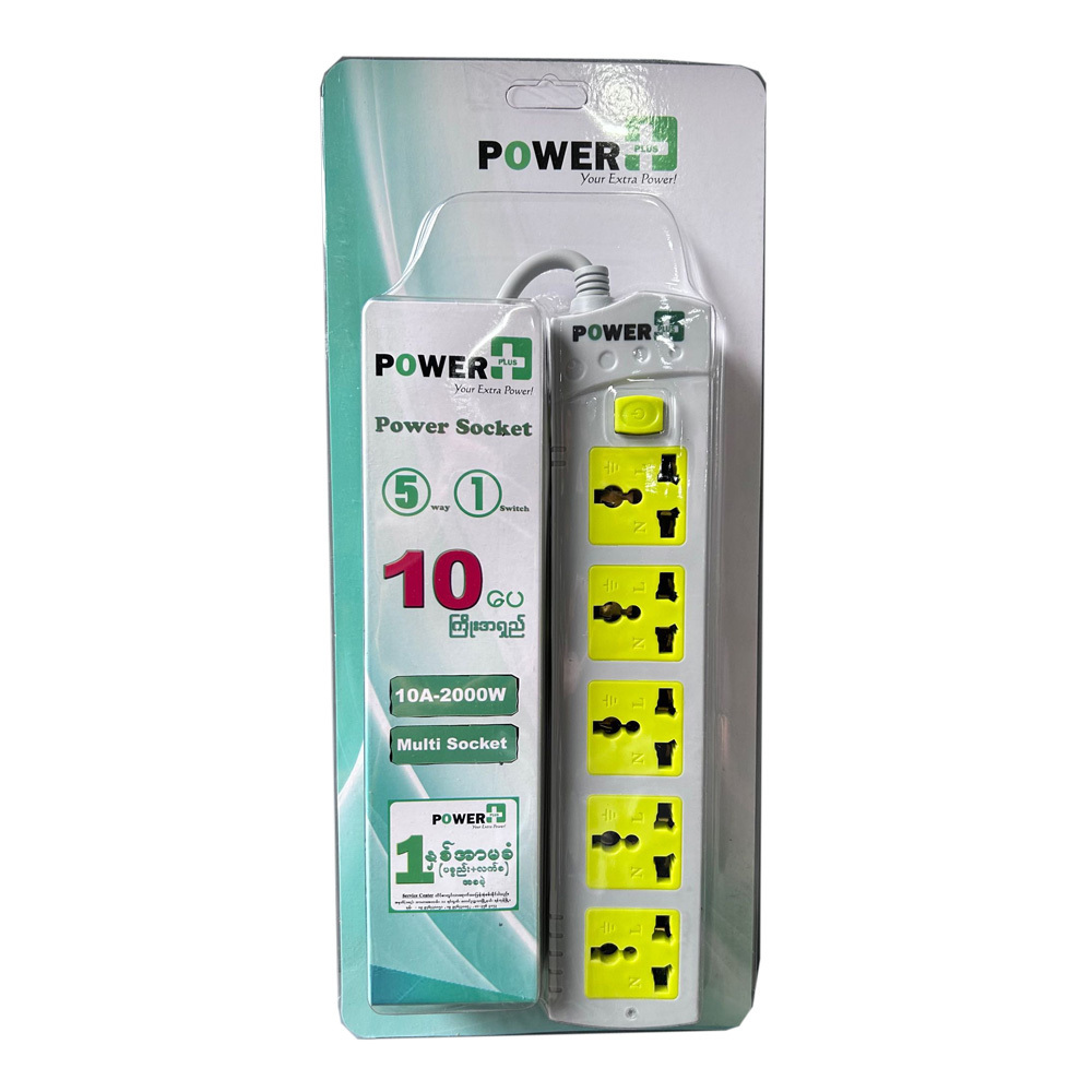 - Power Plus 5 Way Socket (1Switch+3Meter) Grey+Green PPE501I3M